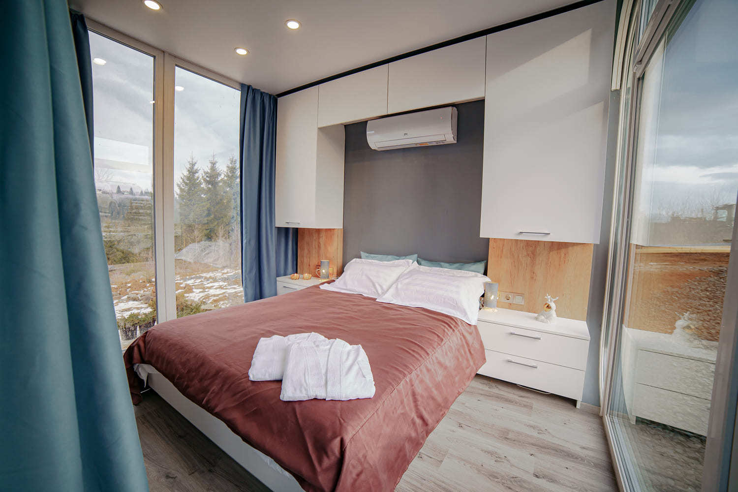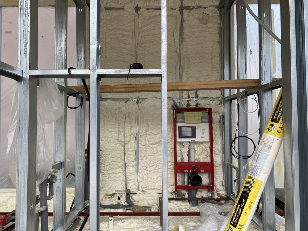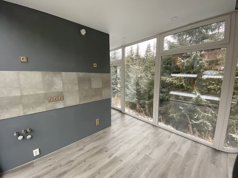 Інвенторний кондиціонер забезпечує опалення разом з настінними керамічні обігрівачами фірми DIMOL. Електрика - розетки, вимикачі та елементи освітлення. Організована система подачі води та каналізації. Облаштовано санвузол з душовою кабіною, умивальником та унітазом.
